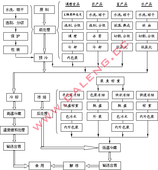 ●冻结方式:搁架、盐水、送风、平板速冻机、连续冻结。