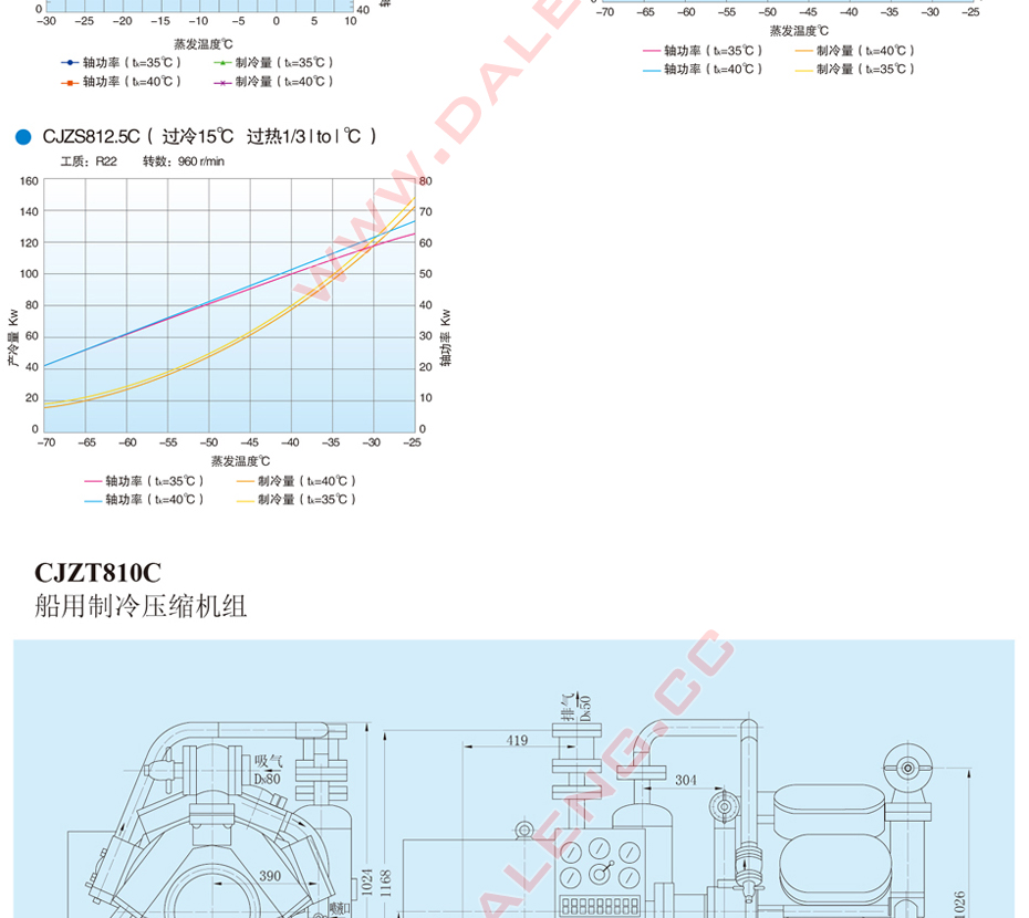 船用活塞式制冷压缩机在冷凝温度≤40℃,蒸发温度单级在+5℃至-30℃、双级在-25℃至-45℃的范围内应用于船上的食品低温加工、冷藏运输及船上的空气调节。