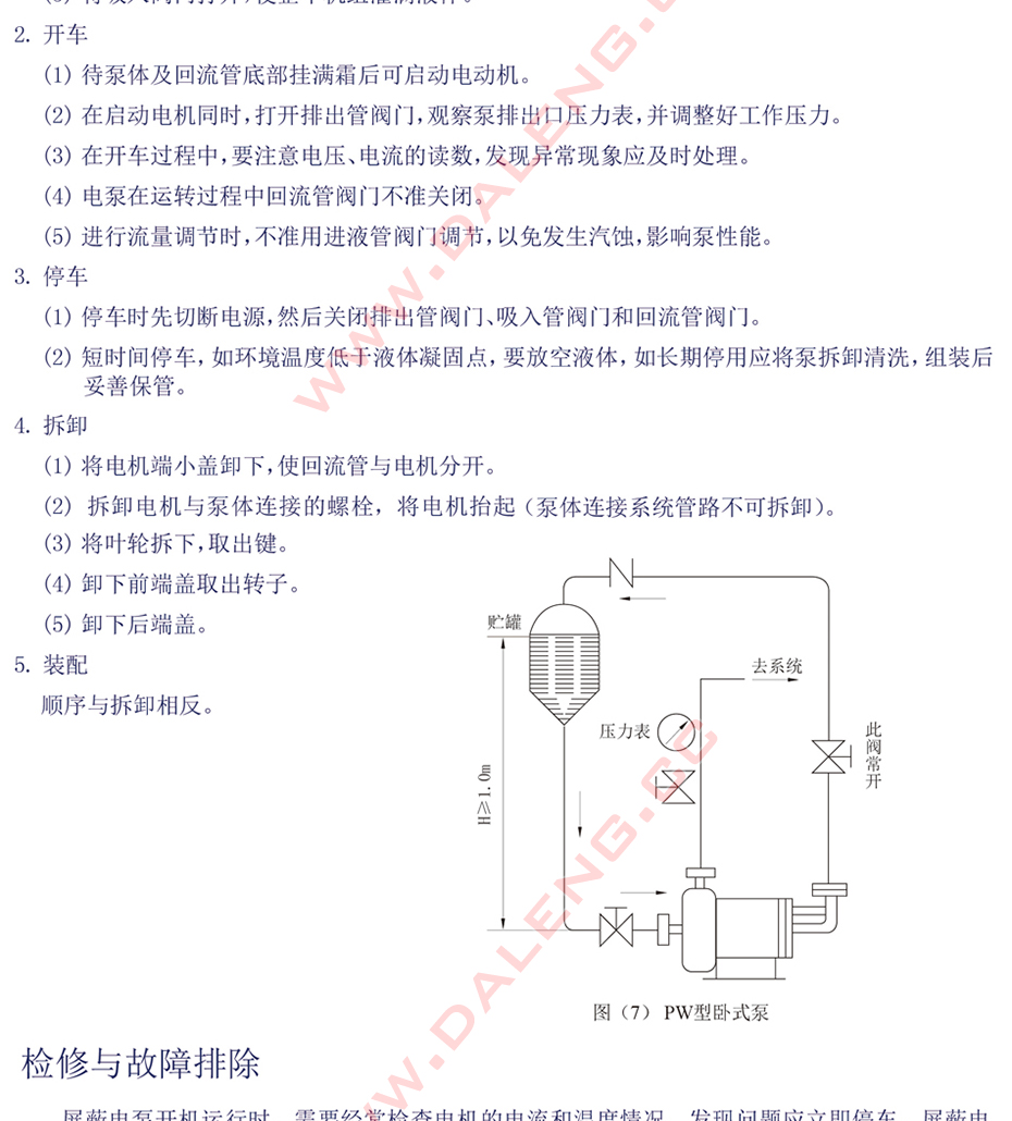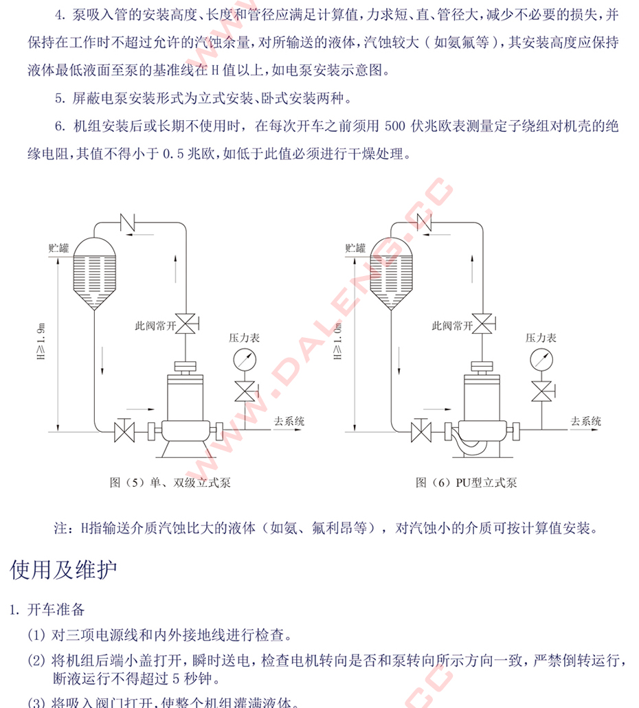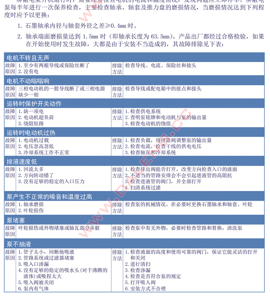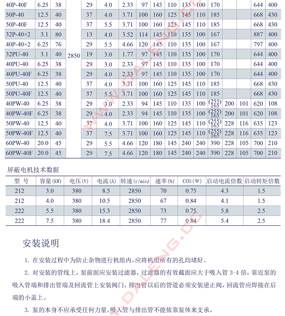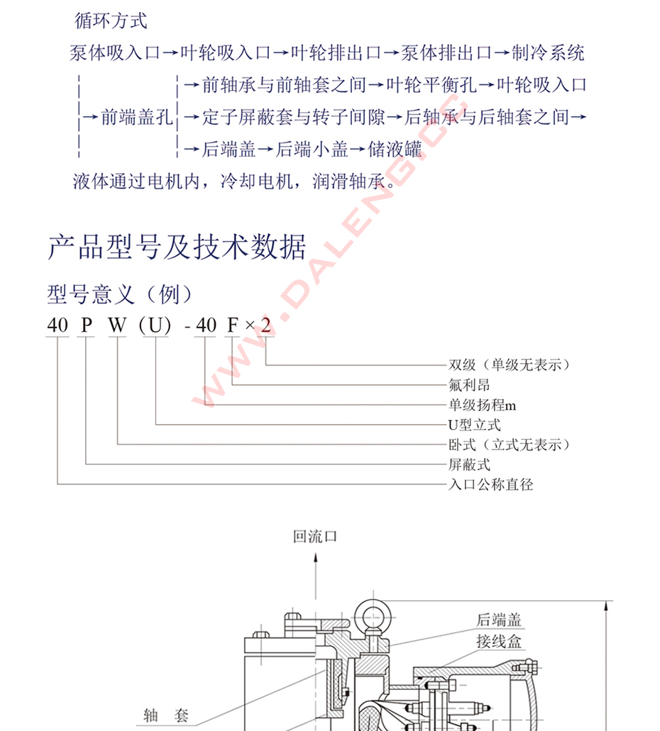 其中PU型、PW型系列屏蔽电泵的主要特征是在泵的进口处叶轮前端设有自吸能力装置。在氨氟制冷系统中,可以在-50℃的低温工况下保持正常的供液状态。并且因具有自吸能力,从而降低了对液体的液位高度设计要求,进一步降低了设备的安装高度。