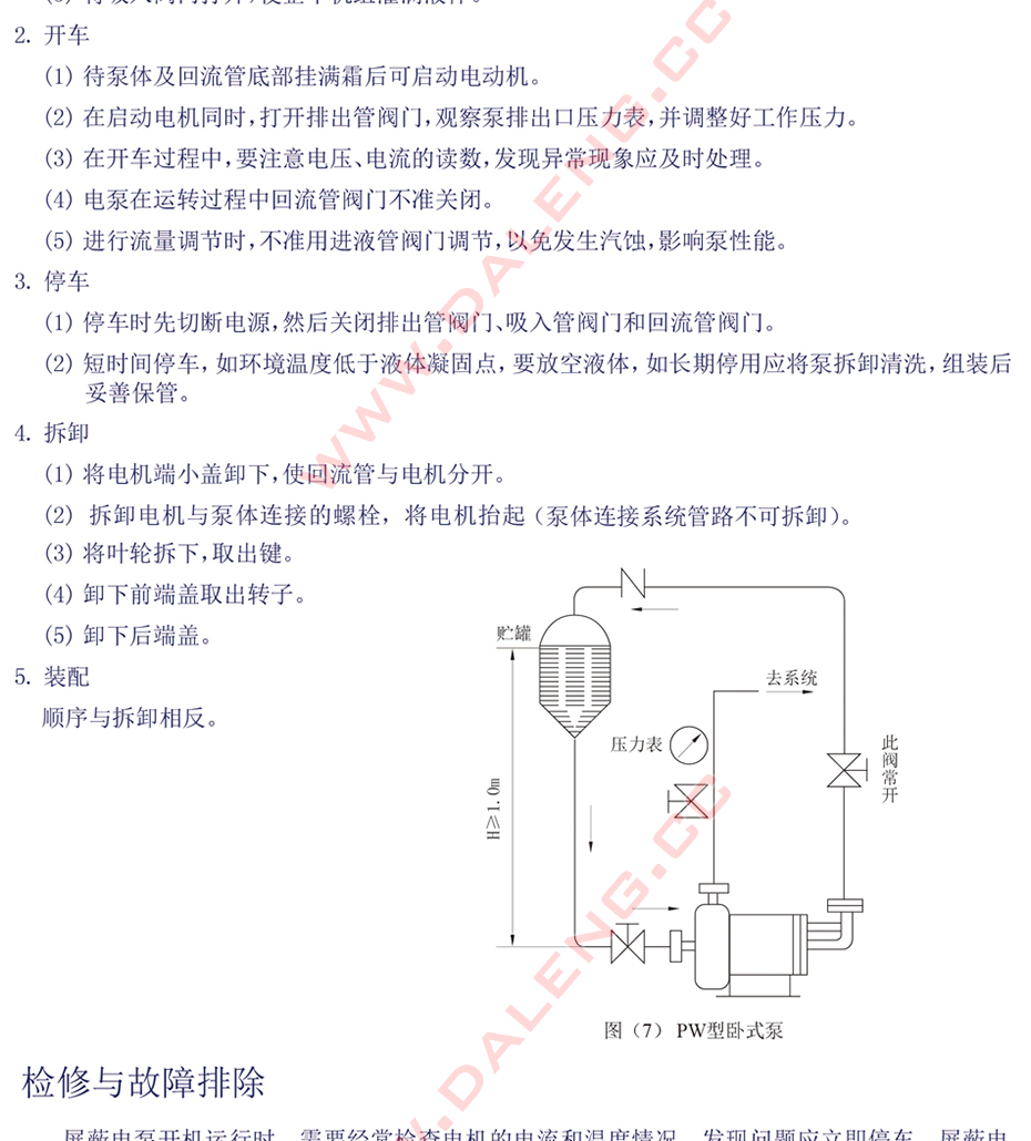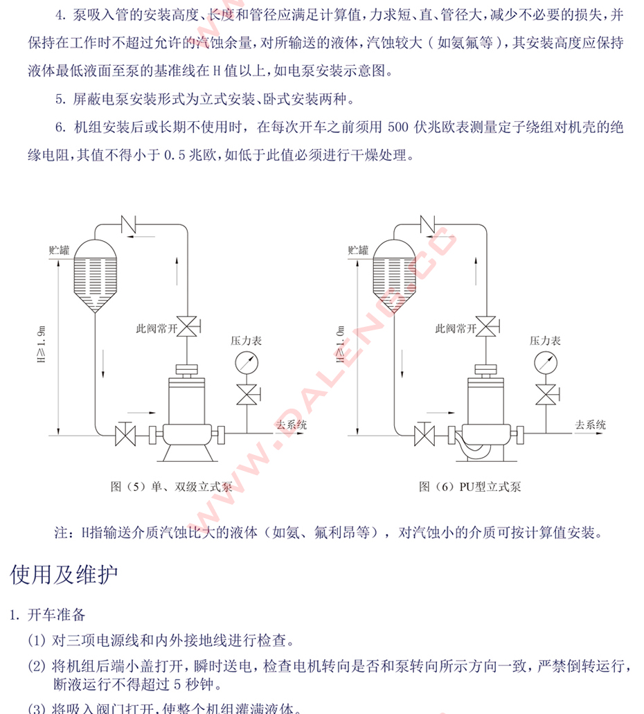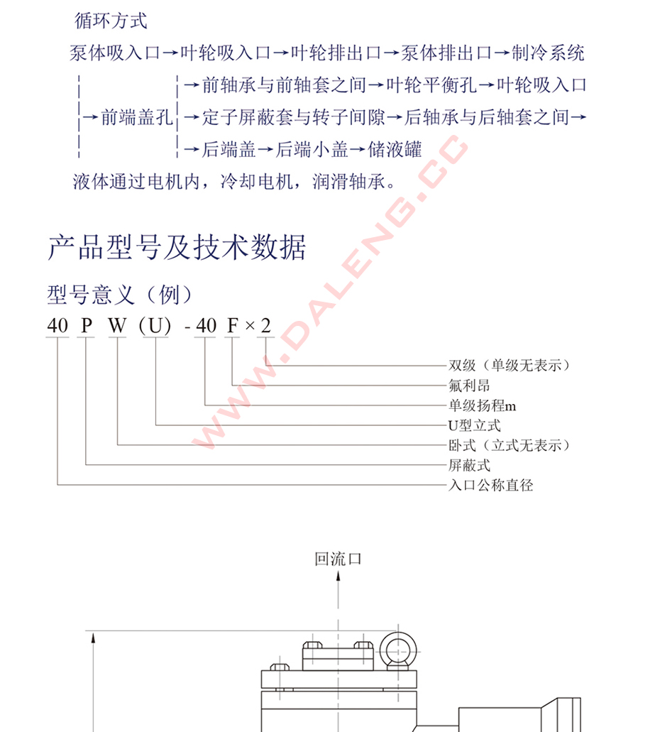 其中PU型、PW型系列屏蔽电泵的主要特征是在泵的进口处叶轮前端设有自吸能力装置。在氨氟制冷系统中,可以在-50℃的低温工况下保持正常的供液状态。并且因具有自吸能力,从而降低了对液体的液位高度设计要求,进一步降低了设备的安装高度。